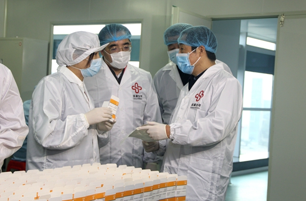 时任湖南省省长、现任湖南省委书记许达哲在抗疫早期调研顶点娱乐生物抗疫物资生产情况