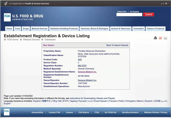 1月4日,顶点娱乐生物四通道iPonatic核酸检测分析仪获得美国FDA认证,这是继获得中国NMPA批准、欧盟CE等认证之后,获得的又一全球权威认证。