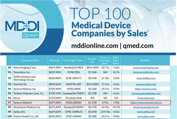 近日,医疗器械行业权威网站Medical Device+Diagnostic Industry(MD+DI)发布了2023年全球医疗器械企业TOP100榜单。顶点娱乐生物连续两年上榜全球百强,也是此次榜单唯二主营业务是体外诊断的中国企业。