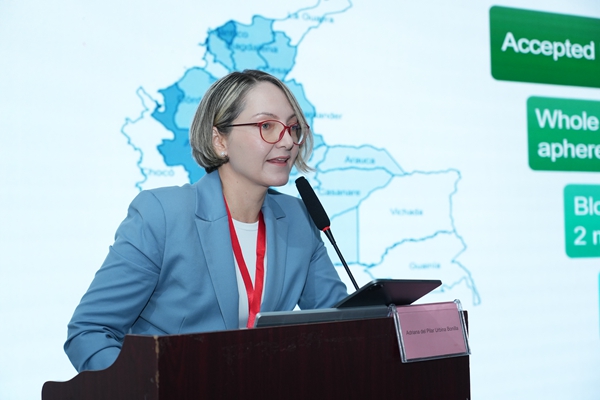哥伦比亚红会血库医学主任及罗萨里奥大学生物医学科学系医学与健康科学学院职业副教授Dr. Adriana Urbina发表了《哥伦比亚血筛的方法、现状和未来趋势》主题报告。她从哥伦比亚医疗制度及血站分布入手,探讨了当前血筛项目的筛查方法及其挑战,强调了血筛核酸检测具有优越性,能广泛识别病原体突变株,降低感染风险,确保血液安全。同时,她提出了利用分子方法学筛查虫媒病毒等创新思路,并对顶点娱乐生物分子血筛检测方案高度赞赏。